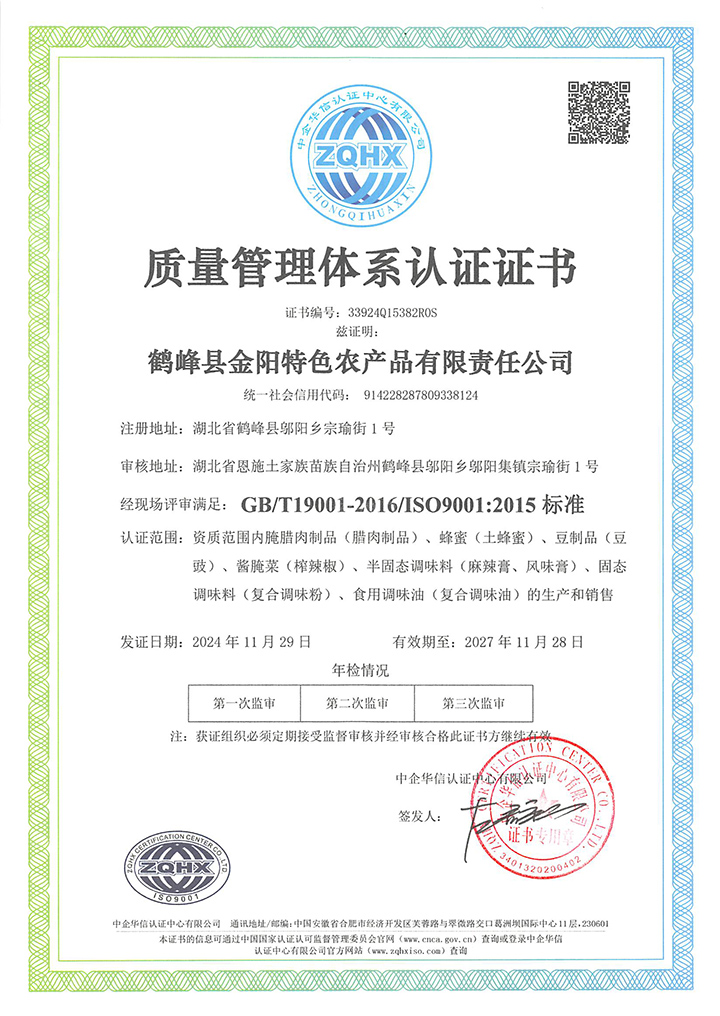 质量管理体系认证证书