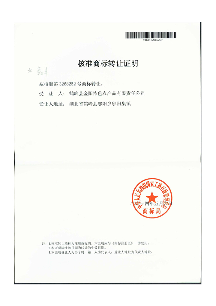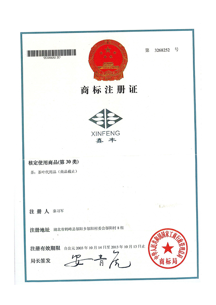 鑫丰商标注册证书